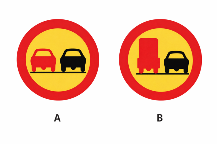 Du kör en tung lastbil. Får du köra om en traktor efter något av vägmärkena?