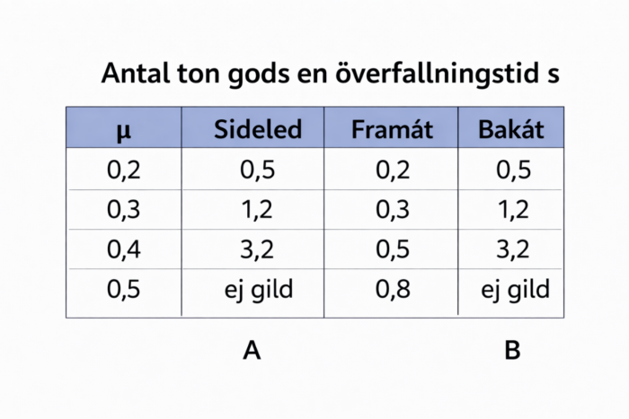 Varför är det viktigt att säkra godset i sidled och bakåt även om friktionskofficienten är 0.5?
