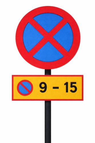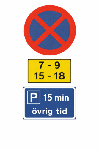 När får du stanna eller parkera enligt denna vägmärkeskombination?