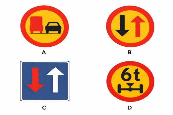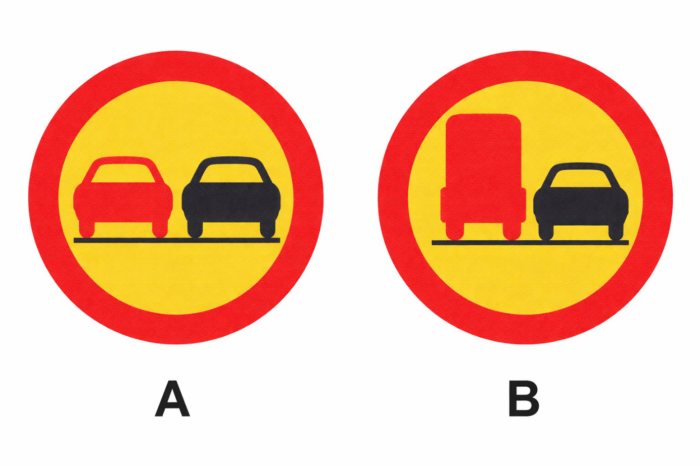 Vilket av dessa vägmärken kräver ett slutmärke för att förbjudet inte längre ska gälla?