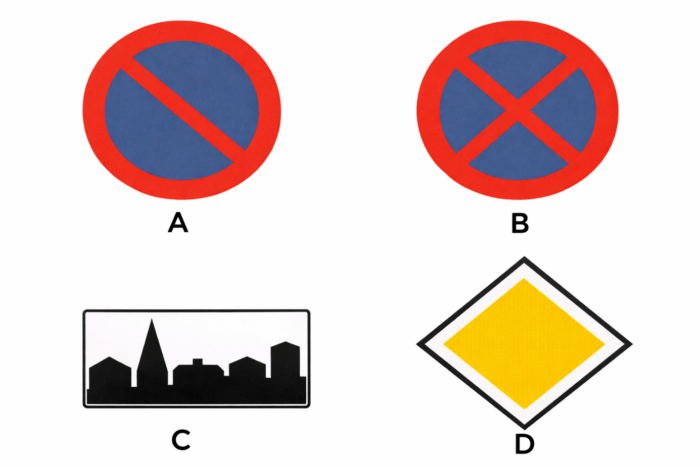 Vilket vägmärke innebär bland annat att det är förbjudet att stanna?