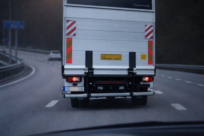 Du ska i mörker köra en transport som är 280 cm bred, du måste märka ut lasten. Var ska utmärkningen placeras?