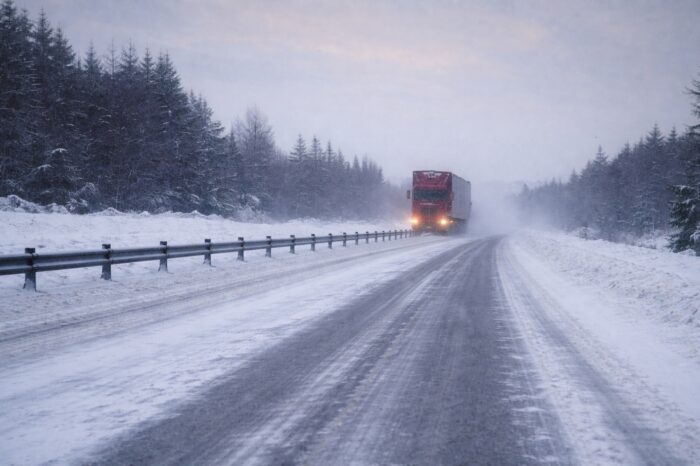 Du kör en lastbil som väger 10 ton och ska fortsätta rakt fram. Hur ska du göra i den här situationen för att avgasutsläppen ska bli så små som möjligt?