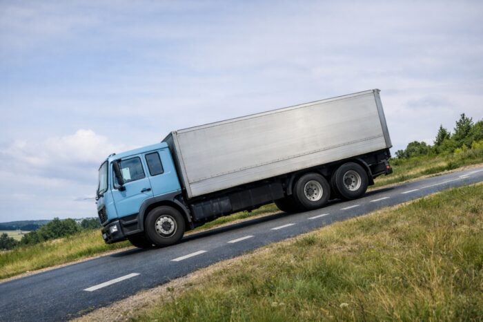 Du kör en lastbil och har högre tungvikten. Var är risken störst att välter när du kör?