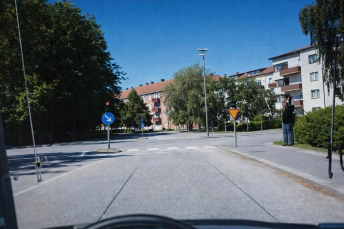 Du närmar dig ett övergängarställle där trafiksignalen har gult blinkande sken. Är övergångsstället bevakat?