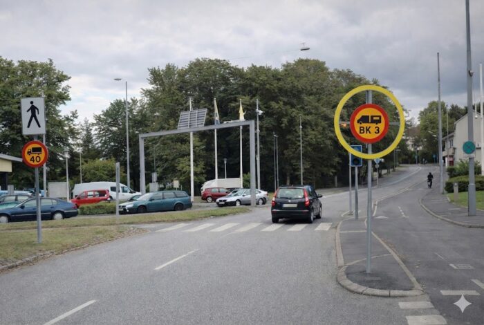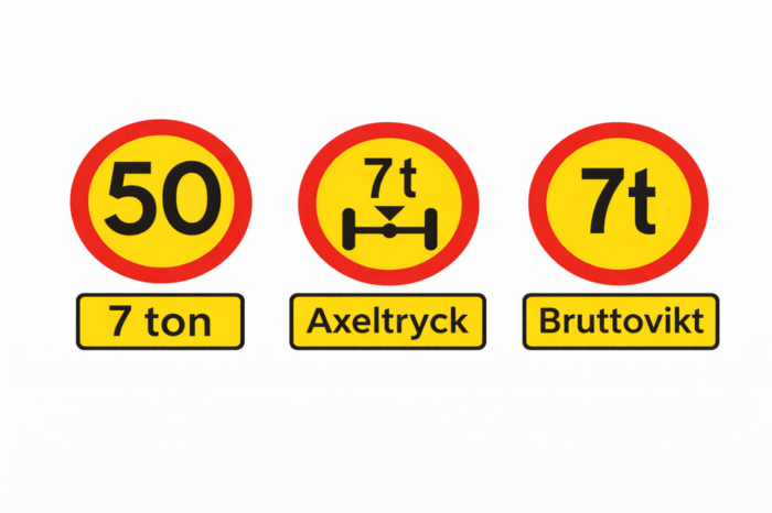 Du kör en tung lastbil. Vilket boggitryck får bilen hög när du passerat det inringade vägmarket? (avståndet mellan boggiaxlarna är mer än 1 meter)