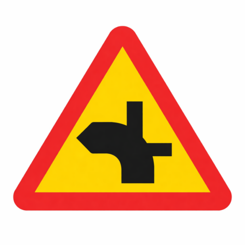 Du kör i landsväg och du ska svänga till vänster i den närmaste korsning. Har du väjningsplikt mot trafik från höger i någon av korsningar?