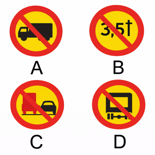 Vilket av vägmärkena anger förbud mot lastbil med totalvikt över 3,5 ton?