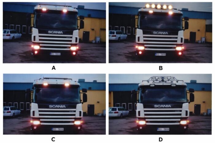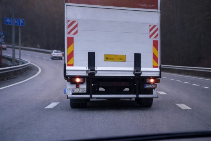 En lastbil står stilla vid vägkanten. Vilken fara bör du vara uppmärksam på i den här situationen?