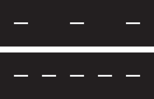 Mittlinje eller körfältslinje och heldragen linje